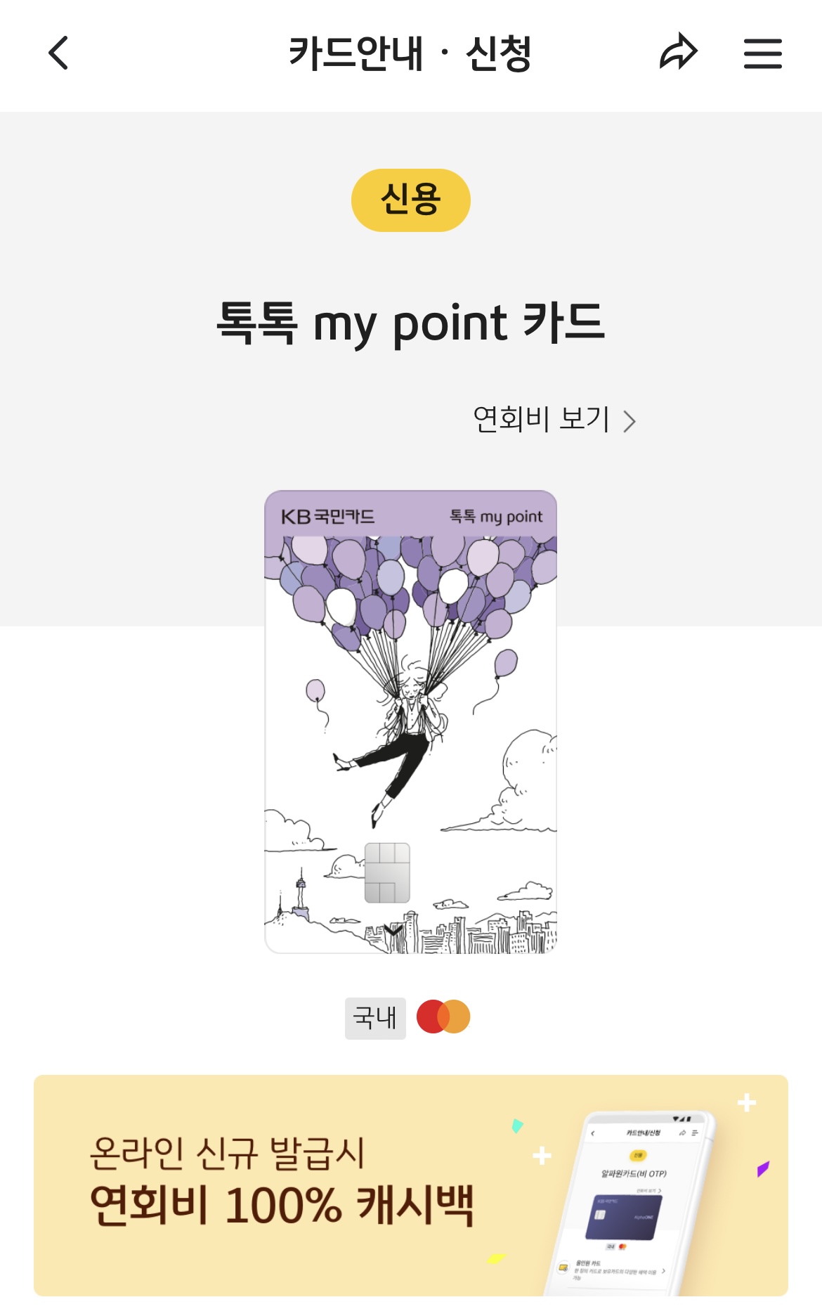 이렇게 생긴 카드이고 보통 모바일로 많이 신청한다.