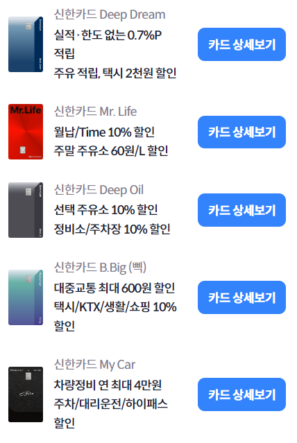 총 10개 카드이고, 연회비 및 혜택이 다 다르기 때문에 확인하세요.